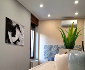 85 mq composti da un ampio soggiorno con angolo cottura, balcone, divano e SMART TV FRAME SAMSUNG 48", due camere matrimoniali dotate entrambe di SMART TV FRAME SAMSUNG 32" ed un bagno con doccia idromassaggio.